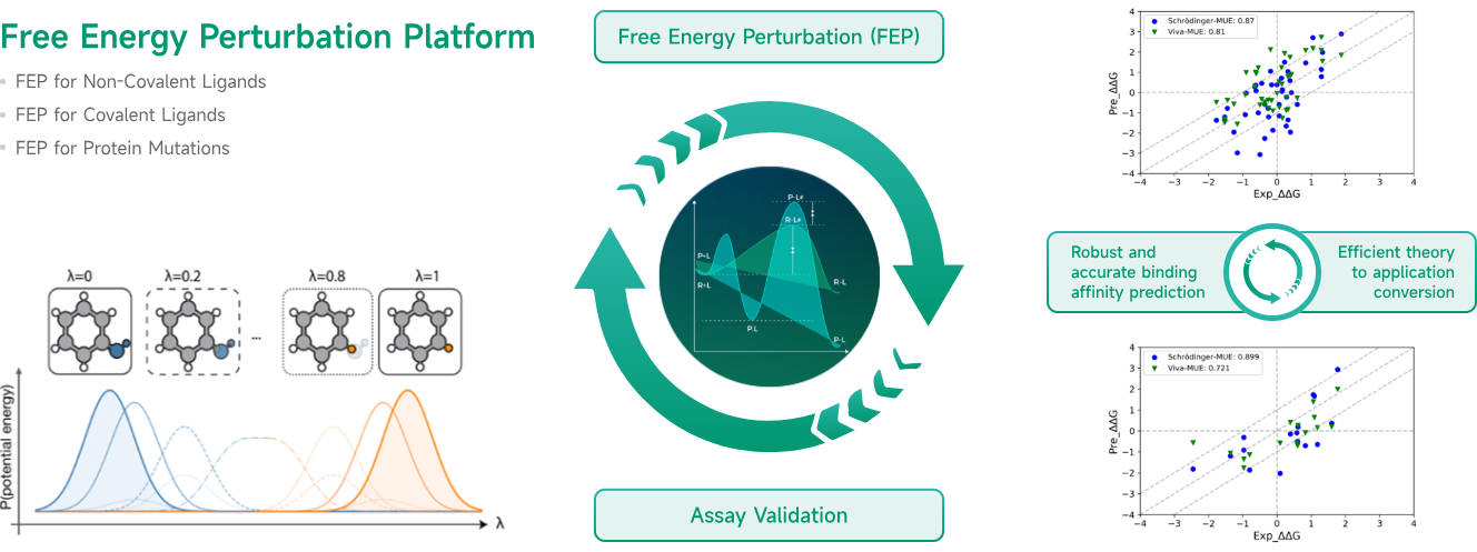 在维亚生物,她带领一支专业的团队,基于自有的高性能计算系统,从零开始自主开发了FEP平台。该平台结合了用户友好界面、自动化流程、全局数据解析和高标准精度。由于该平台是在维亚生物内部建立的,算法科学家对方法有全面的了解,可以调控其参数,进而凭借第一手经验优化FEP计算条件。对比薛定谔的模块,维亚自有的自由能微扰方法误差(dG)误差在1kcal/mol之内,可信度较高。在超算集群的算力加持下,FEP计算现在已经成为维亚大多数药物发现项目的常规流程。