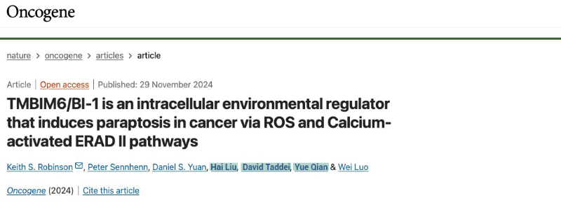 如需了解更多论文内容,请查看:Robinson, K.S., Sennhenn, P., Yuan, D.S. et al. TMBIM6/BI-1 is an intracellular environmental regulator that induces paraptosis in cancer via ROS and Calcium-activated ERAD II pathways. Oncogene (2024). https://doi.org/10.1038/s41388-024-03222-x