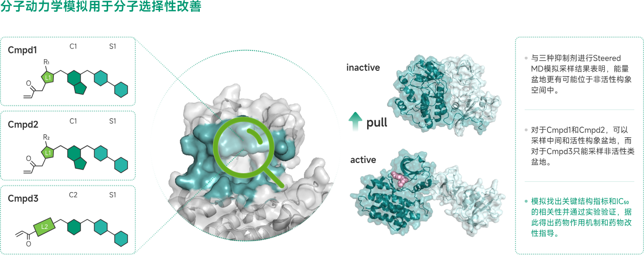 AIxDDDTM的靶点组合评估模块充分利用了最新自然语言处理和语言大模型对相关多组学数据进行分析,把目标靶点与感兴趣的靶点在相关的疾病领域潜在的协同效应(药效叠加、毒副作用拮抗)进行打分排序。分子设计模块则是通过挖掘和模拟药化专家的分子设计思维方式,利用AI技术根据药效团--靶点的主要作用并通过强化学习生成和不断进化调优分子。索智利用自研的自由能计算方法,包括这篇文章成果,在化合物优化过程中起到关键作用。帮助对新设计的化合物合成前进行GO/NO GO判断。