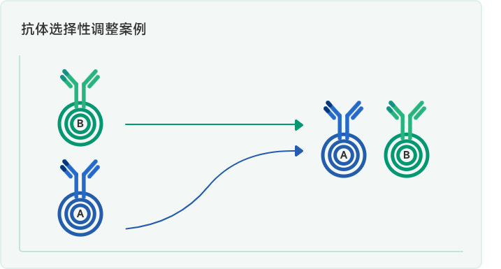设计的突变提高了一个双靶抗体对抗原A的亲和力,降低其与抗原B之间的亲和力差异