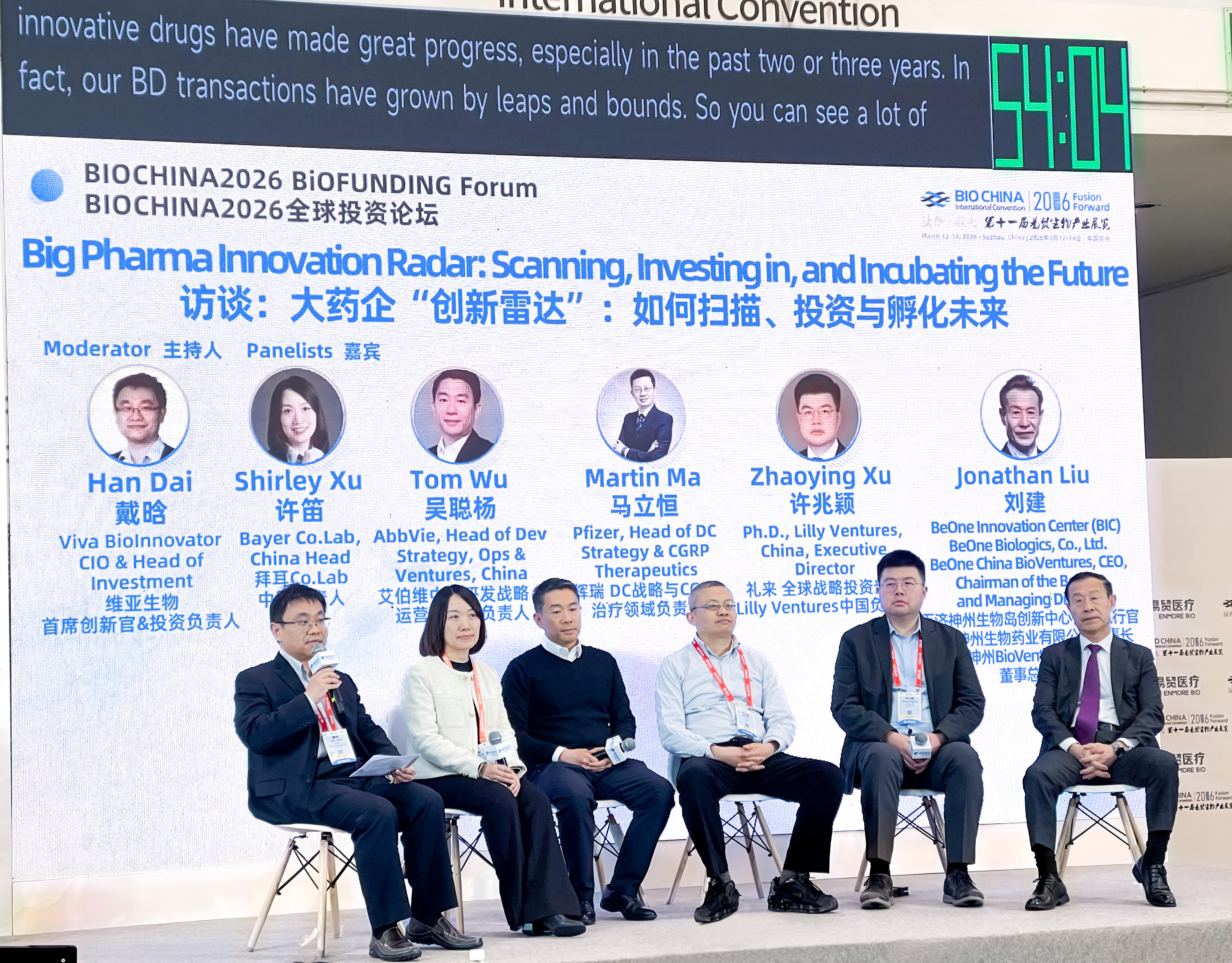 戴博士还主持了"大药企'创新雷达':如何扫描、投资与孵化未来"主题访谈,与来自拜耳,艾伯维,辉瑞,礼来和百济神州的多位嘉宾聚焦大型药企的投资布局与早期项目孵化,深度探讨产业资本如何精准捕捉前沿技术、赋能创新生态、布局未来赛道。